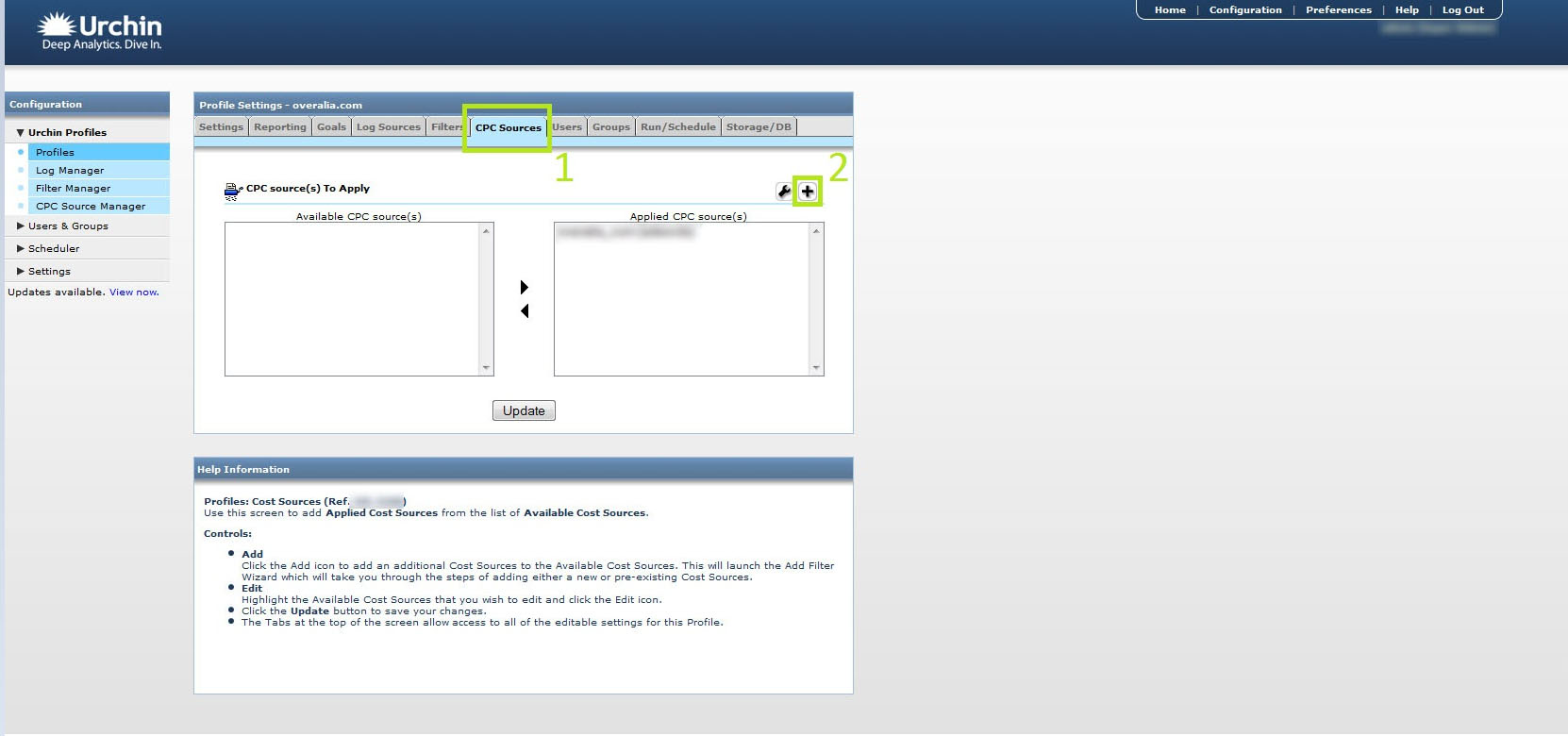 A continuación, accedemos a la pestaña de «Fuentes de CPC» y clicamos cobre el icono «+» para poder importar la cuenta de Google AdWords a Urchin 7.