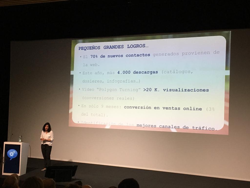Durante los casos prácticos, fueron las propias representantes de empresas industriales quienes demostraron de primera mano los resultados que se pueden obtener gracias al marketing online. Entre ellas, Patricia Heras, de CMZ, cliente de Overalia, que animó a todas las empresas a apostar por la web como herramienta de venta. Pese a tener un producto reconocido en el mercado, esta empresa familiar que fabrica tornos CNC detectó que tenía margen de mejora: «Queríamos una presencia online adecuada y mejorar en UK».