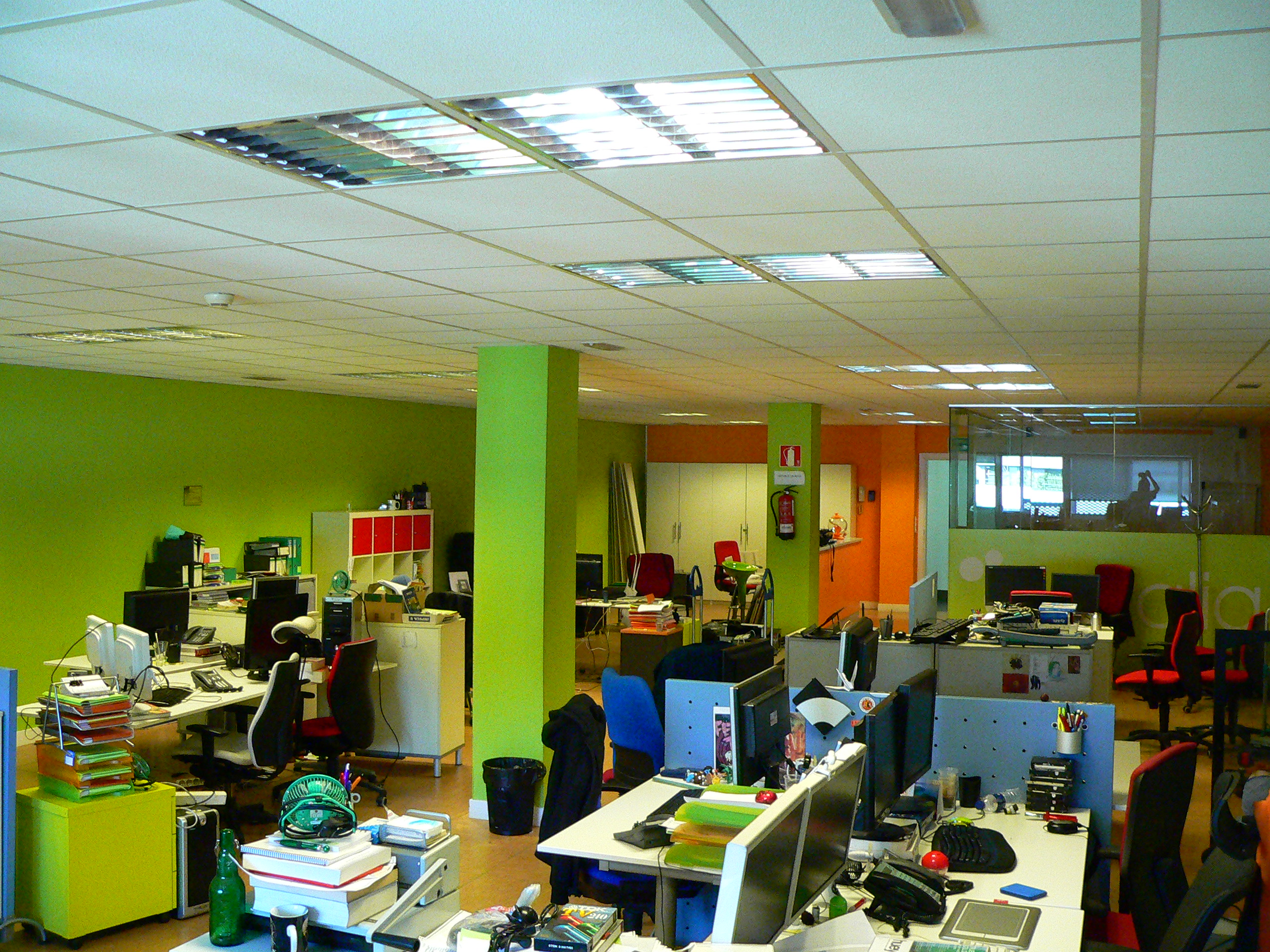 Como podéis ver en las fotos el cambio a simple vista es apreciable. Dejamos atrás los colores que tanto han caracterizado a Overalia durante estos años y pasamos a una decoración más tradicional. Pero eso durará poco, en cuanto terminemos el traslado (todavía nos falta acondicionar parte de la oficina) podremos ir transmitiendo nuestra personalidad a este nuevo espacio. Ya estamos pensando cómo integrar los colores y estilo de Overalia en la nueva oficina…