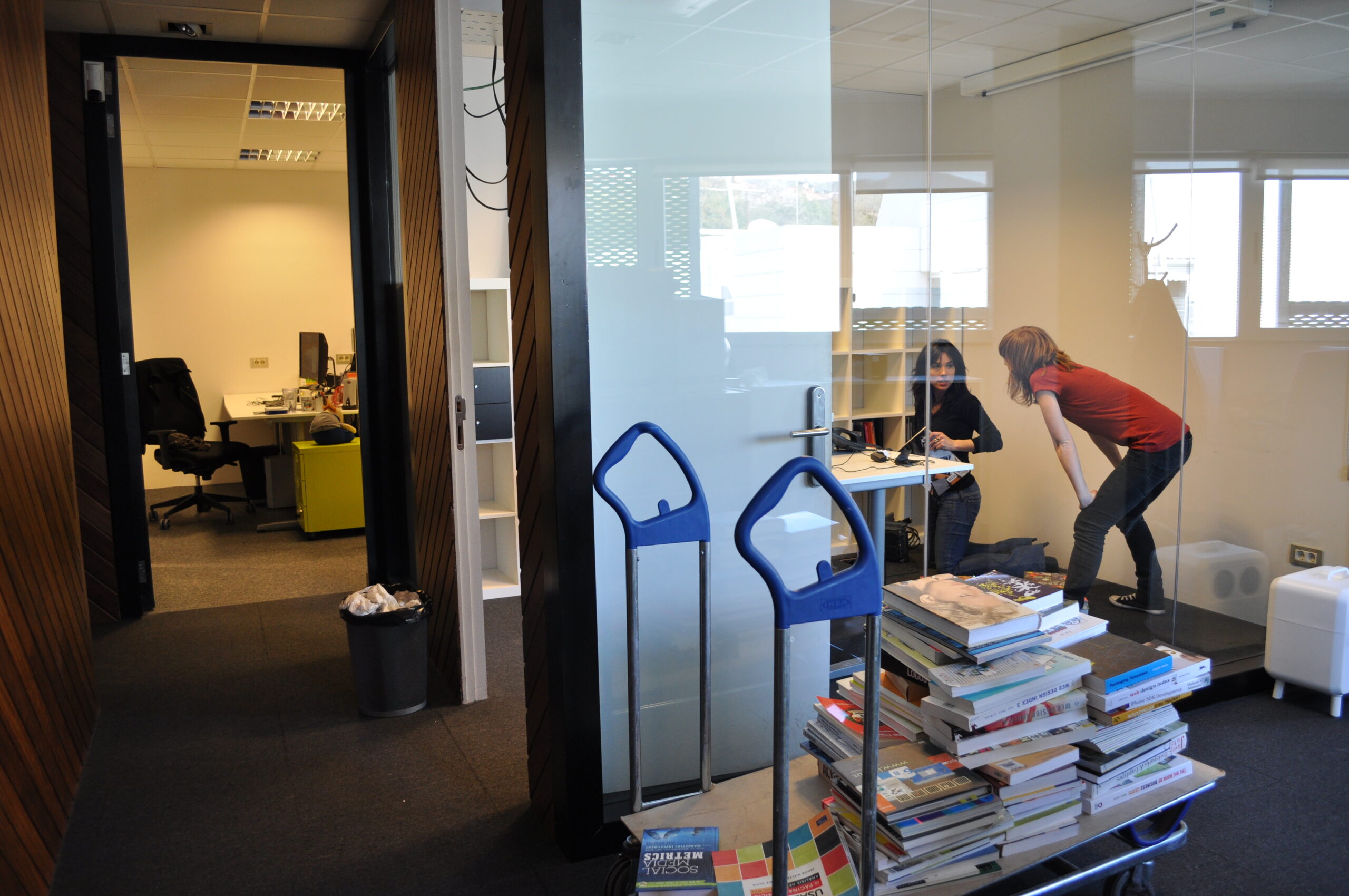 Todos los miembros del equipo de Overalia estamos muy contentos con el cambio. A lo largo de la mañana del viernes estuvimos yendo y viniendo de una oficina a otra trasladando nuestros equipos de trabajo y teniendo una primera toma de contacto con nuestro nuevo «hogar».